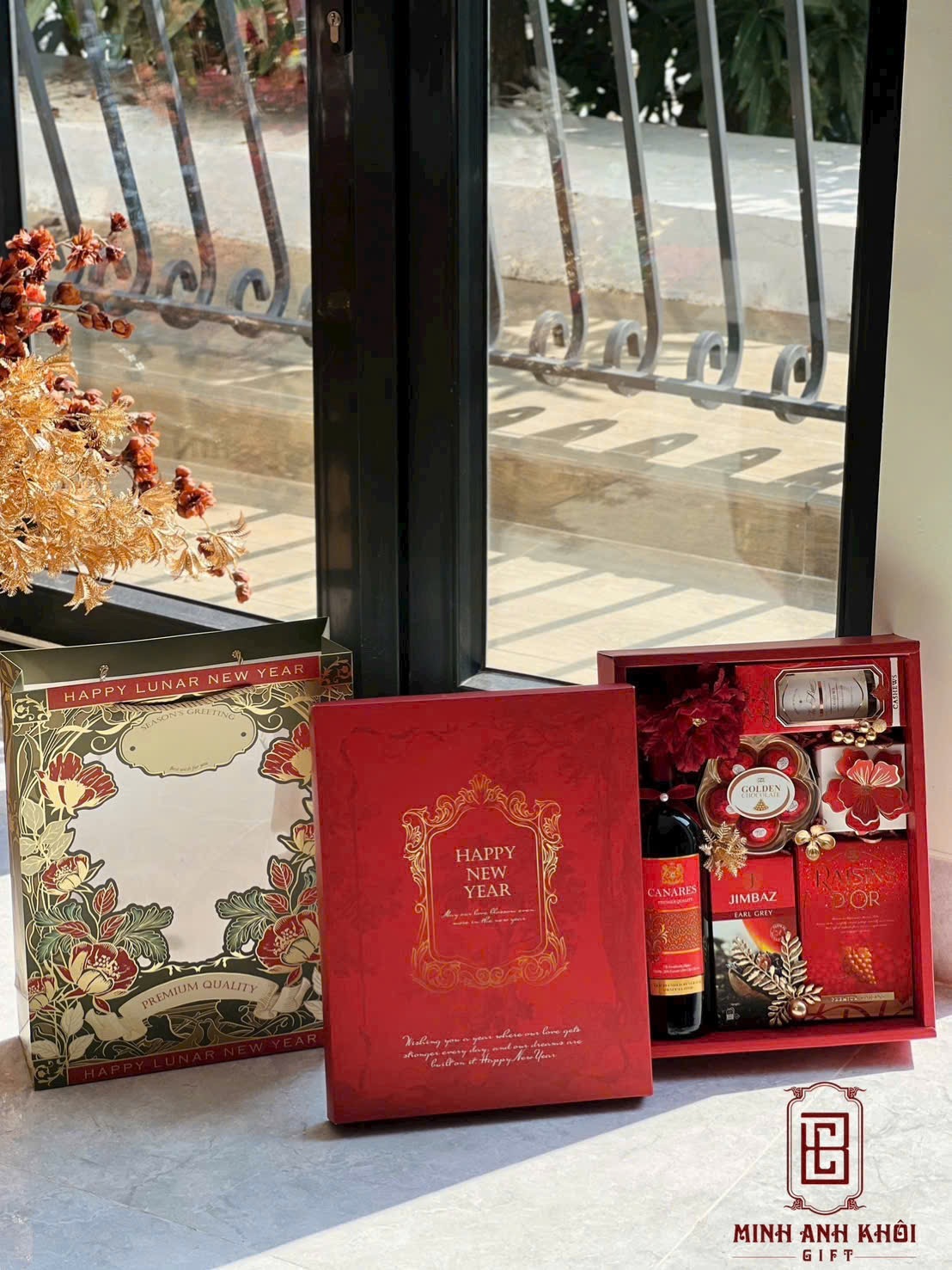 Ngoài ra, hộp có khay định hình riêng cho từng sản phẩm như rượu, bánh, yến, trà… cũng làm tăng chi phí sản xuất, từ đó ảnh hưởng trực tiếp đến giá in hộp quà Tết.